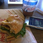 Just sitting in a Tim Hortons eating a bagel with bacon on it, listening to Arcade Fire, looking out at the evergreens and the mountains, and contemplating my access to healthcare and ability to marry whoever I want to.